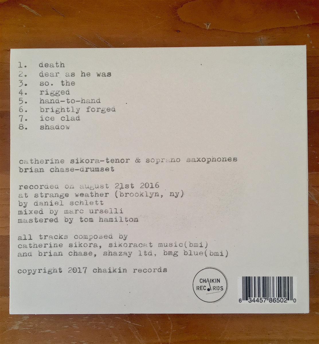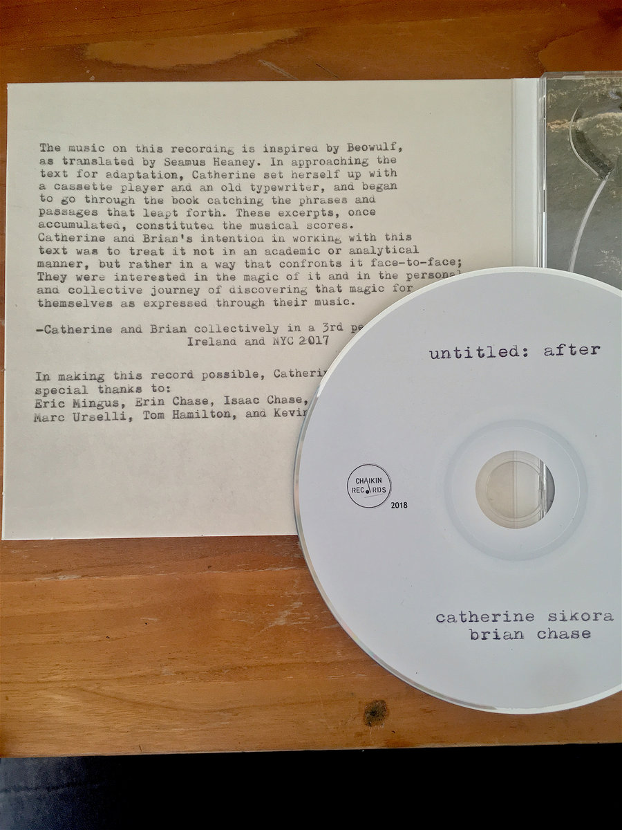The duo of CATHERINE SIKORA (Eric Mingus, Elliott Sharp) and BRIAN CHASE (Yeah Yeah Yeahs, John Zorn) pairs two distinguished artists of the avant-jazz community. For the duo’s debut album, untitled: after, Catherine and Brian turned to the epic poem Beowulf for inspiration. The classic text’s themes of confrontation and courage were channeled into compositions as a basis for improvisation. ... more
